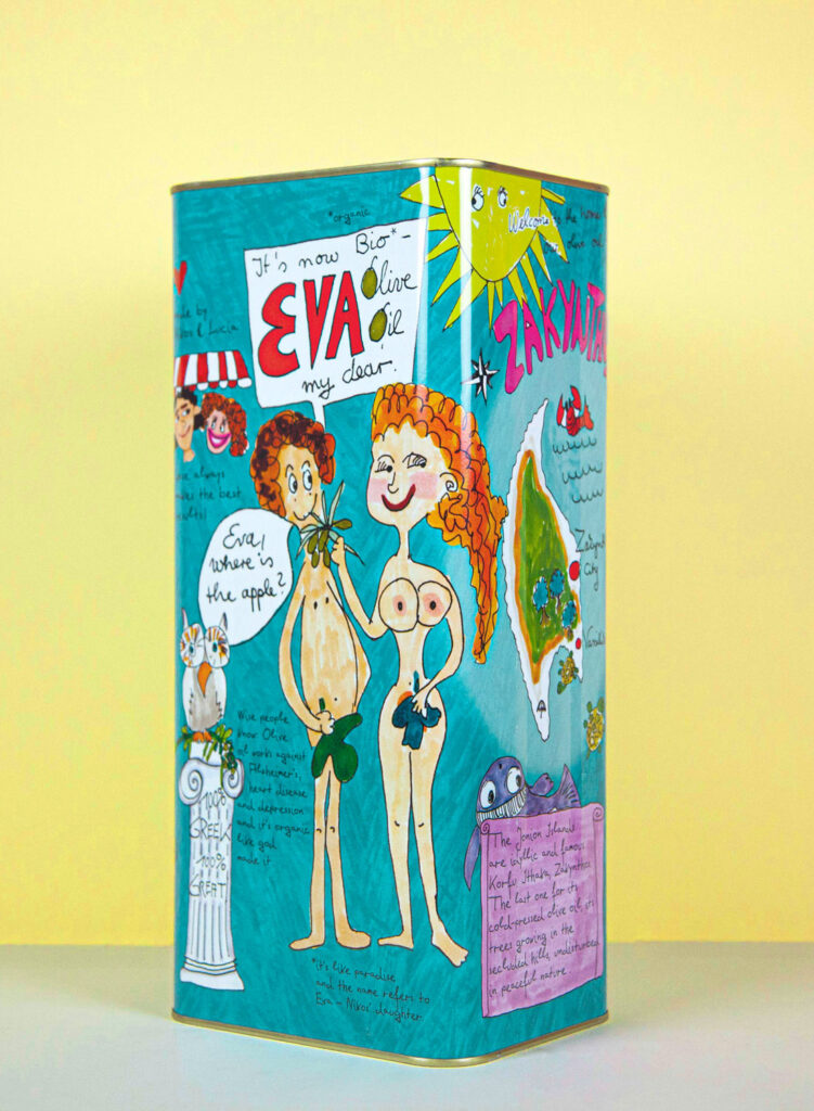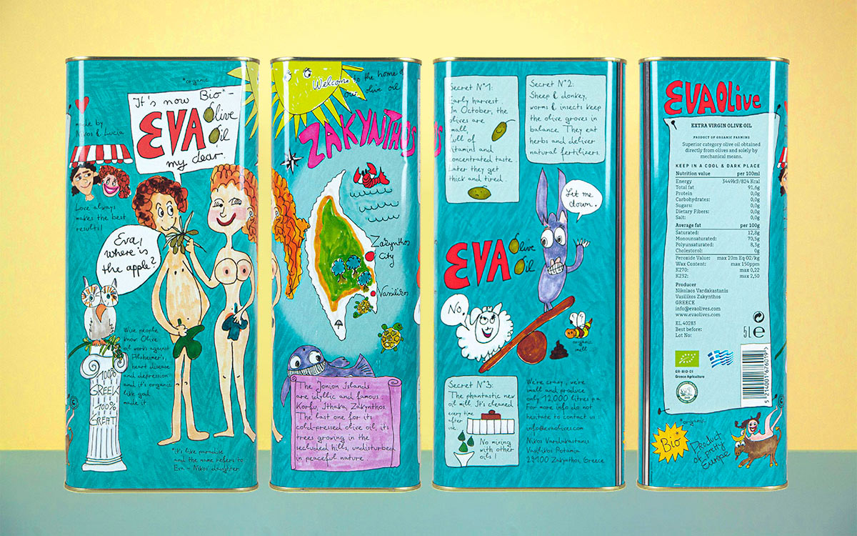 Auf Zakynthos lebt ein Gemüsehändler, der das wohl beste Olivenöl der Welt presst. Dieses Olivenöl hat er nach einer seiner Tochter benannt. Die Tochter heißt Eva. Und wir wollten diesem Öl das wohl beste Packaging Design der Welt auf den Leib designen. So weit die Fakten. Ob wir das geschafft haben, darf die Welt nun selbst beurteilen.