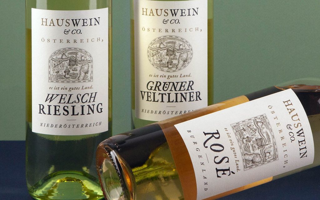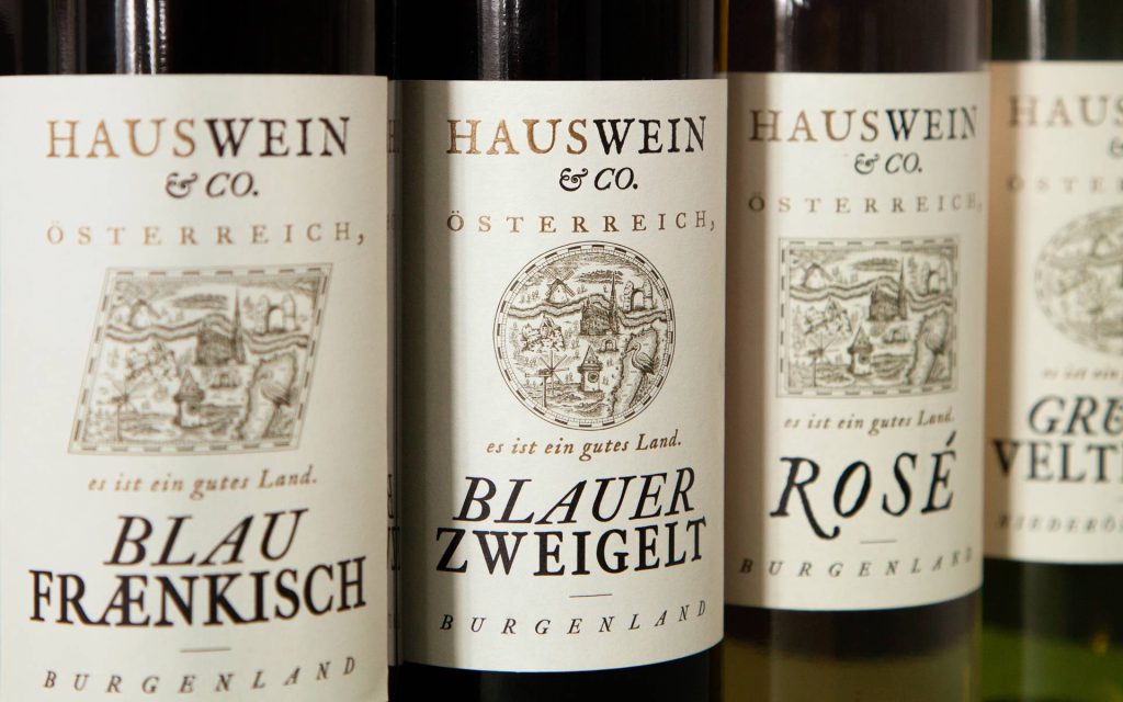 Die Etiketten für fünf Sorten besten Hauswein, die wir für WEIN & CO neu aus dem Boden stampfen und gestalten durften, präsentieren sich nun superklassisch mit französischem Aspekt. Historische Illustrationen mit Darstellungen der österreichischen „Weinbundesländer“ treten in verschiedenen Formen auf und harmonieren hervorragend mit alten Schriften. Résumé: Es ist tatsächlich ein gutes Land, nicht zuletzt weil es so wunderbare Weinetiketten hat.