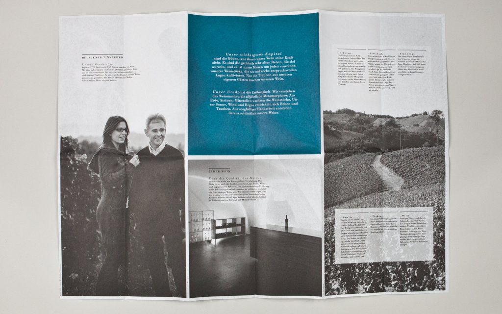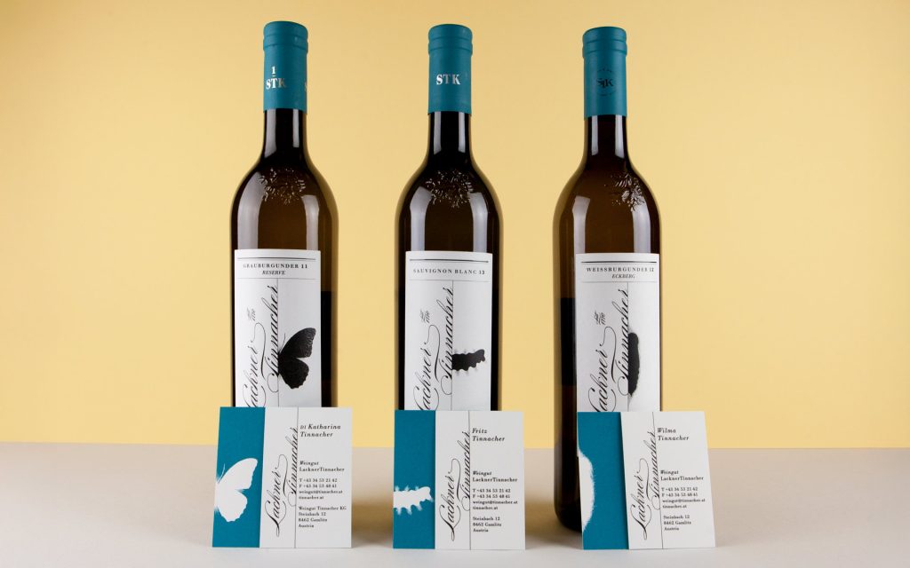 PackagingDie Weinhauerfamilie betreibt ihr Geschäft im südsteirischen Wunderland. Man kennt den Namen seit 1770. Andere wären längst den Verlockungen der Vergrößerung zum Opfer gefallen. Nicht so die Lackner Tinnachers: Wenn etwas wachsen soll, dann ist das der Wein. Dazu ist die Familie noch feinsinnig und aufgeschlossen: Unser Entwurf mit den Metamorphosen des Schmetterlings wurde mit großer Freude von allen Generationen der Familie spontan angenommen. Die Naturverbundenheit und Bescheidenheit der Marke kam bei der Kundschaft gut an. Das macht Freude.