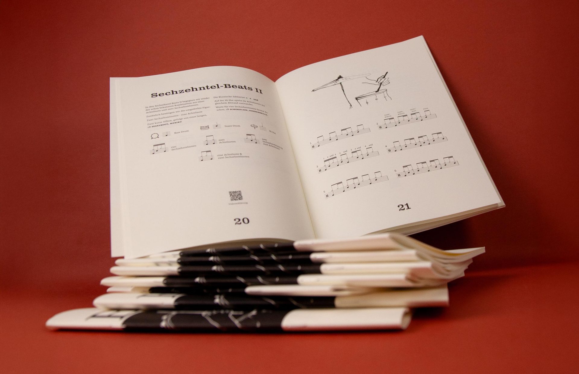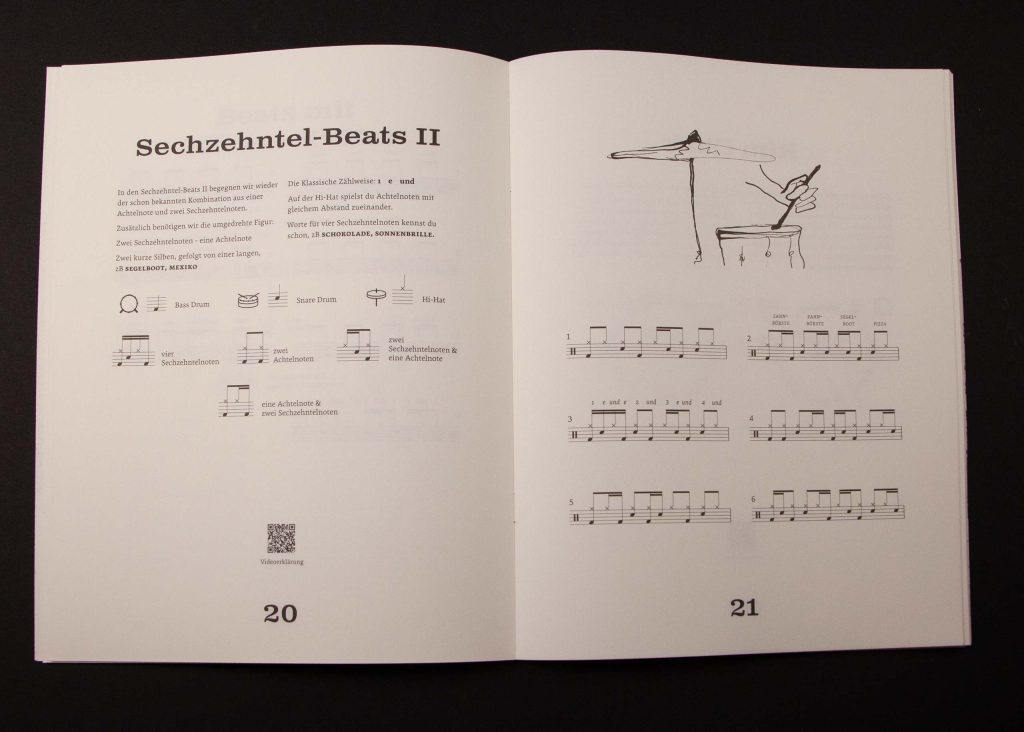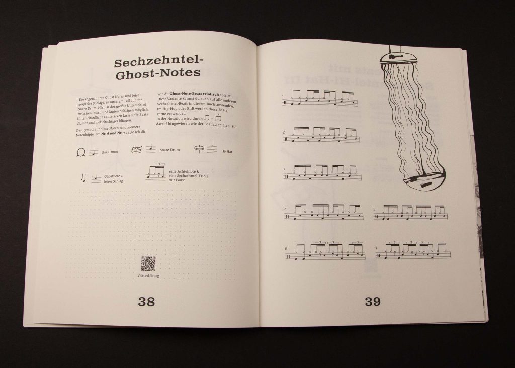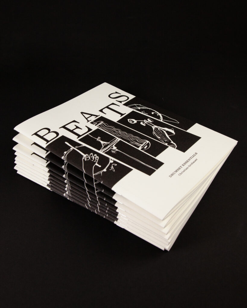 Based on the fact that rhythms in pop music have hardly changed since the Beatles, master drummer Christian Grobauer has put together a book well worth a listen. In *Drumset Essentials*, he tactfully distils the essential drum beats. QR codes link to videos, and simple instructions guide even beginners to success. We have done everything to ensure that Christian’s work is also a visual treat. The visual concept swings, impresses with its clarity and illustrations by Gulim Askar, and can be viewed at christiangrobauer.com.