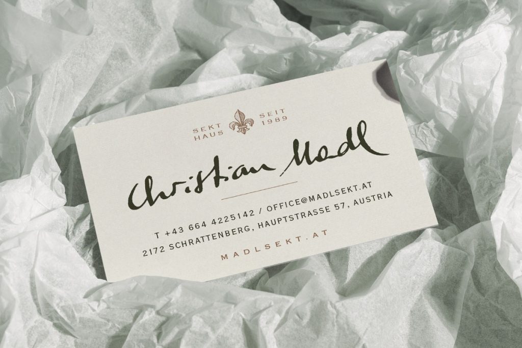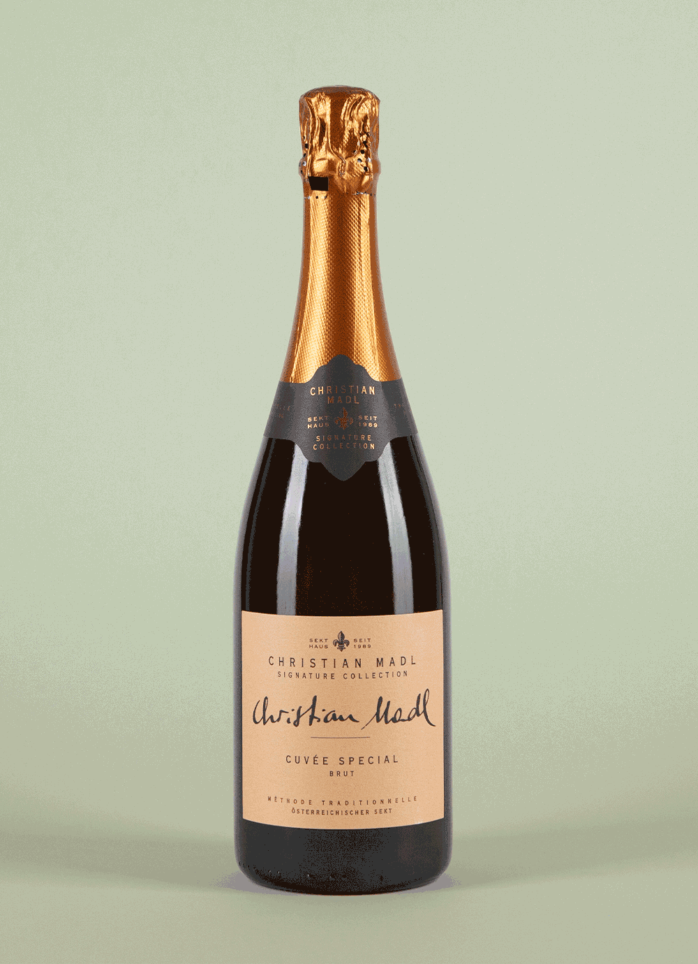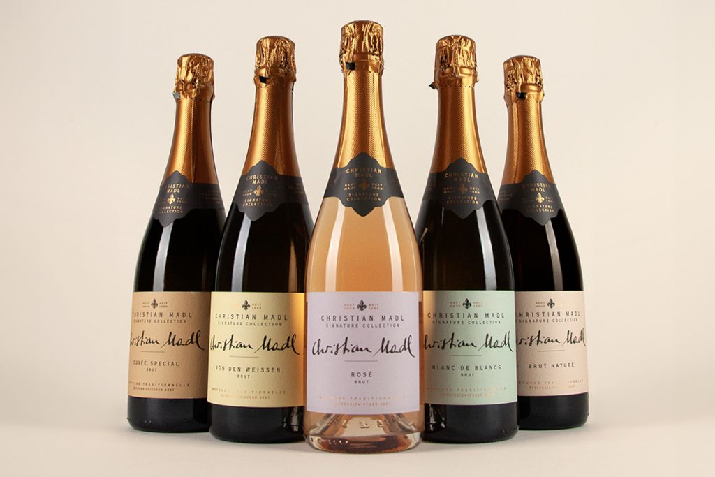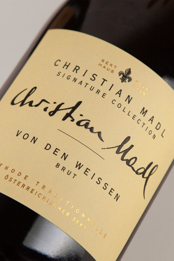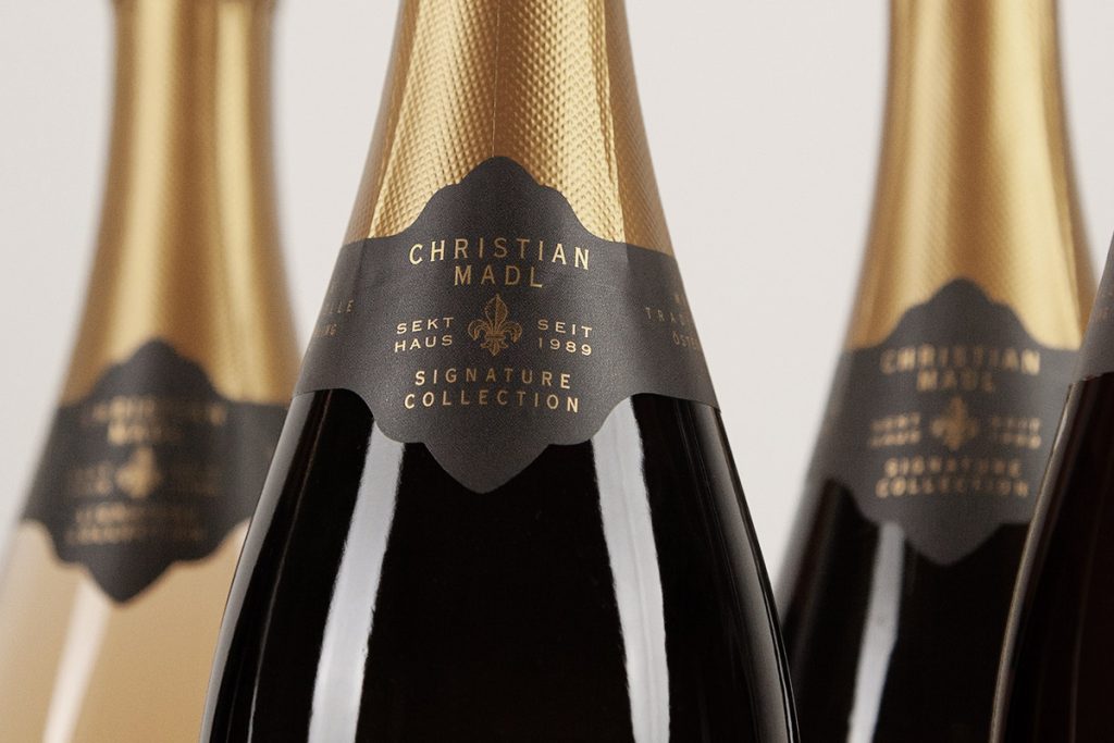 When he asked us to design the presentation of his Signature Collection, it was clear to us from the outset that Austria’s finest sparkling wine would also need to bear the finest label. With the kind permission of Christian Madl himself, we have entrusted this task to the bottles, and so they proudly bear the winemaker’s signature on their shoulders in a classically refined, timelessly elegant manner.