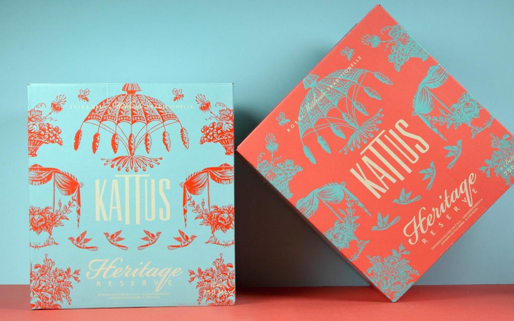 PackagingThe newly launched “Heritage Reserve” sparkling wine duo, marking the 165th anniversary of our long-standing client Kattus, can look back on a long heritage of festive traditions alongside the once-famous “Alte Reserve”, and in its current incarnation impresses with crisp freshness (white) and an exceptionally fruity, creamy mousse (rosé). Visually, the two “new reserves” combine the floral patterns typical of Kattus with pastel-coloured stylistic elements of the Belle Époque, evoking the company’s early days. (From personal experience, these two hand-picked Kattus twins are such charming and lively accompaniments to a meal that it is essential to always have one in reserve.)