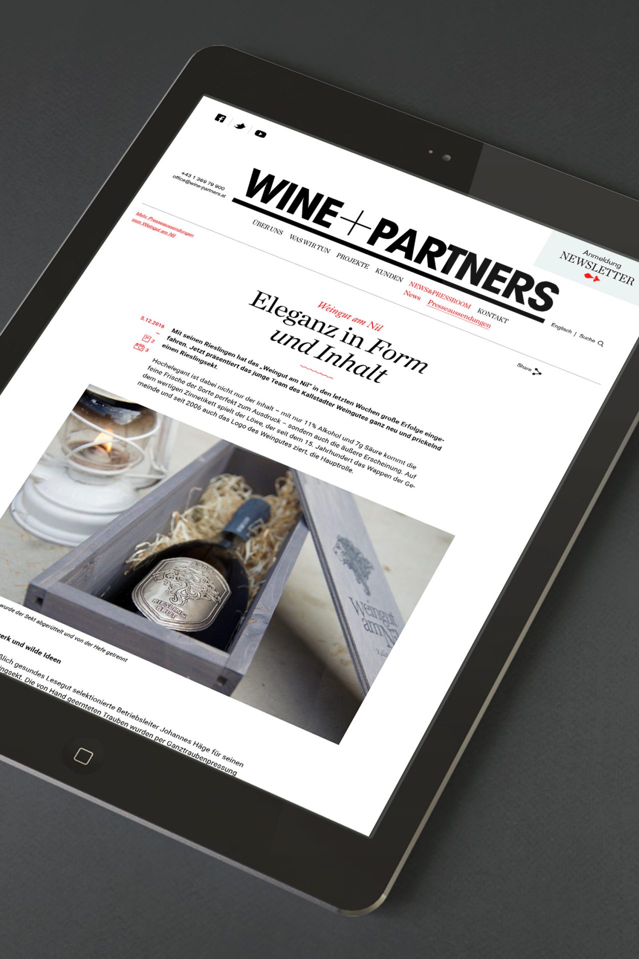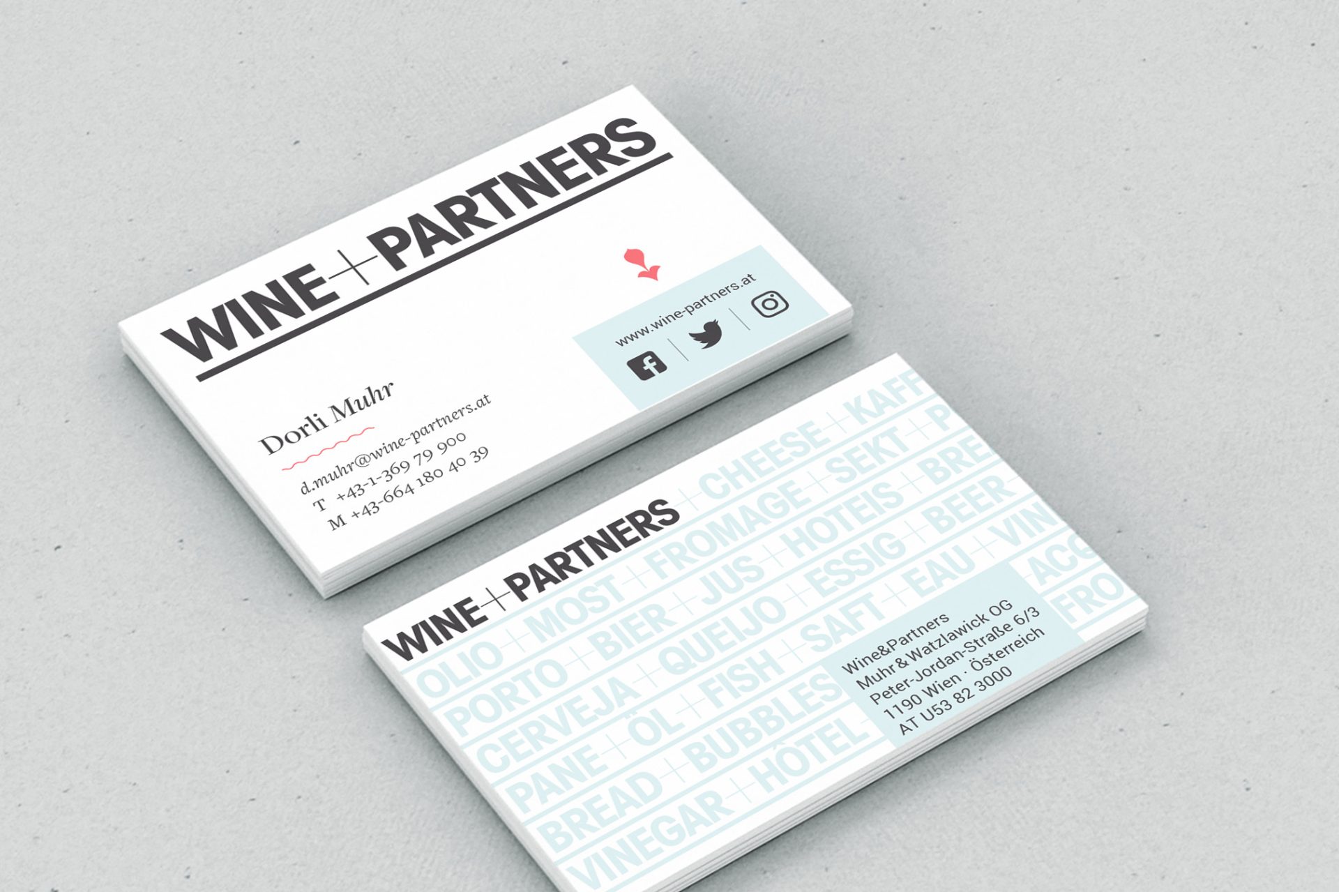 BrandingThe Wine&Partners PR agency was set up 25 years ago by Dorli Muhr. Originally positioned exclusively as wine experts, the agency has long since branched out beyond viniculture. We certainly picked up on this variety in our concept, when we came up with a new website that takes its visual lead from blogs.