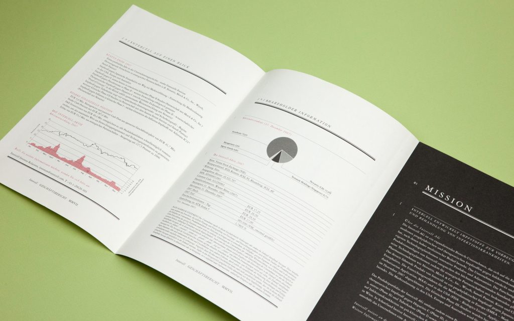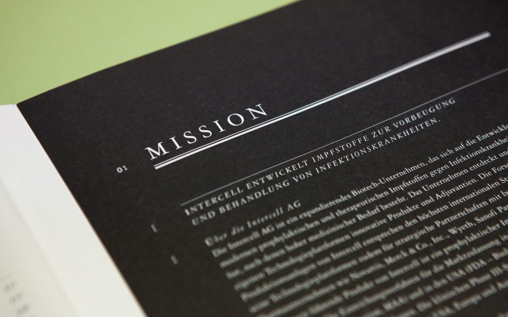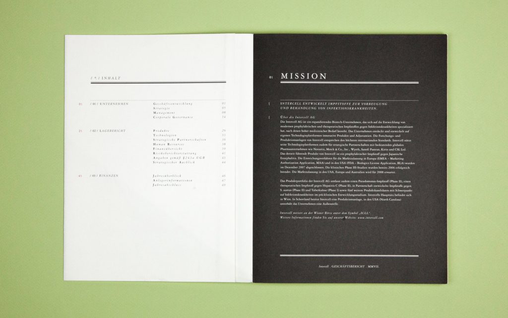Intercell AG focused on the research, development, manufacture and marketing of innovative vaccines against a wide range of infectious diseases that had previously been incurable. Alessandri supported the company from 2001 to 2012 in the areas of annual reports, B2B communication, corporate communications and digital. In 2007, Intercell celebrated its 10th anniversary: A small start-up had managed to become a classic. That’s why we adopted a classic approach. The fine thread binding was particularly well received – the annual report opened beautifully and didn’t keep slamming shut, which prompted the analysts to sing its praises. Even if the ribbon markers were just a printed illusion.