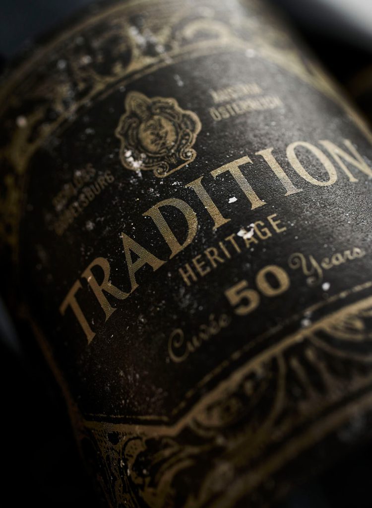 In any case, the ‘Tradition’ wines draw inspiration from winemaking practices of the early 19th century. We therefore felt that the age deserved respect, and so the labels were printed as facsimiles, given a mouldy finish, look wonderfully dusty and, even on closer inspection, could easily be 200 years old.