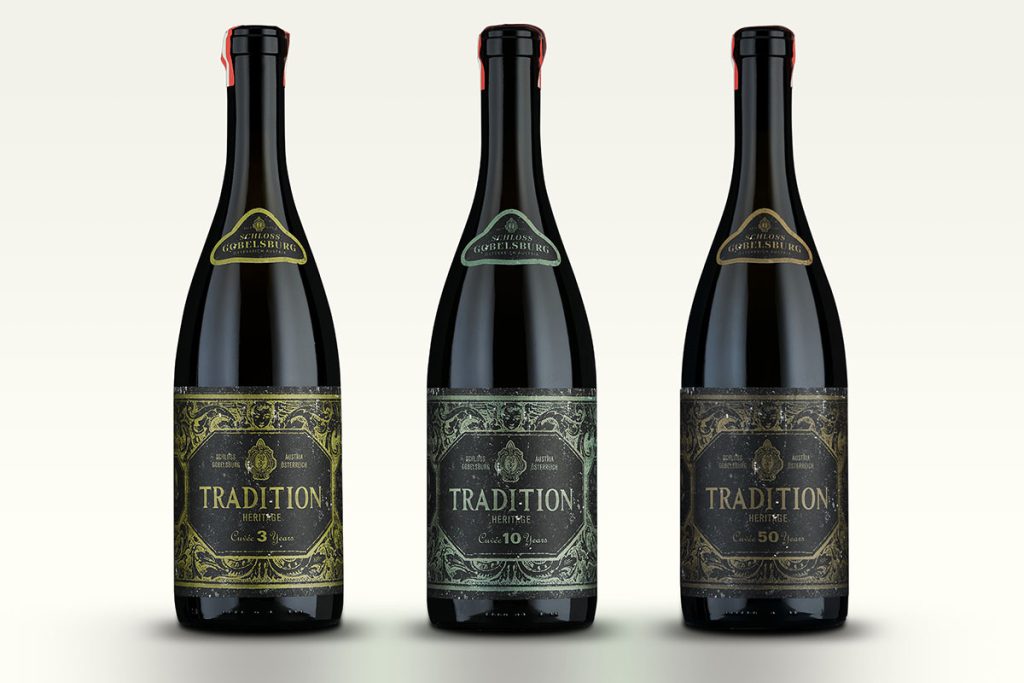 PackagingWhat do you do with a treasure trove of wine aged for 50 years (in words: fifty years) from the deepest cellars of the Gobelsburg Padres? Into the box it goes – that is to say, you open it carefully, blend it anew and create limited-edition cuvées aged 50, 10 and 3 years. (Although blending vintages is otherwise rather rare and is usually only seen with fine port wines.)