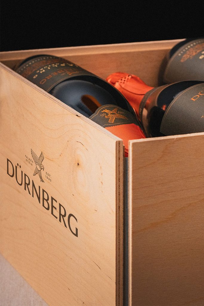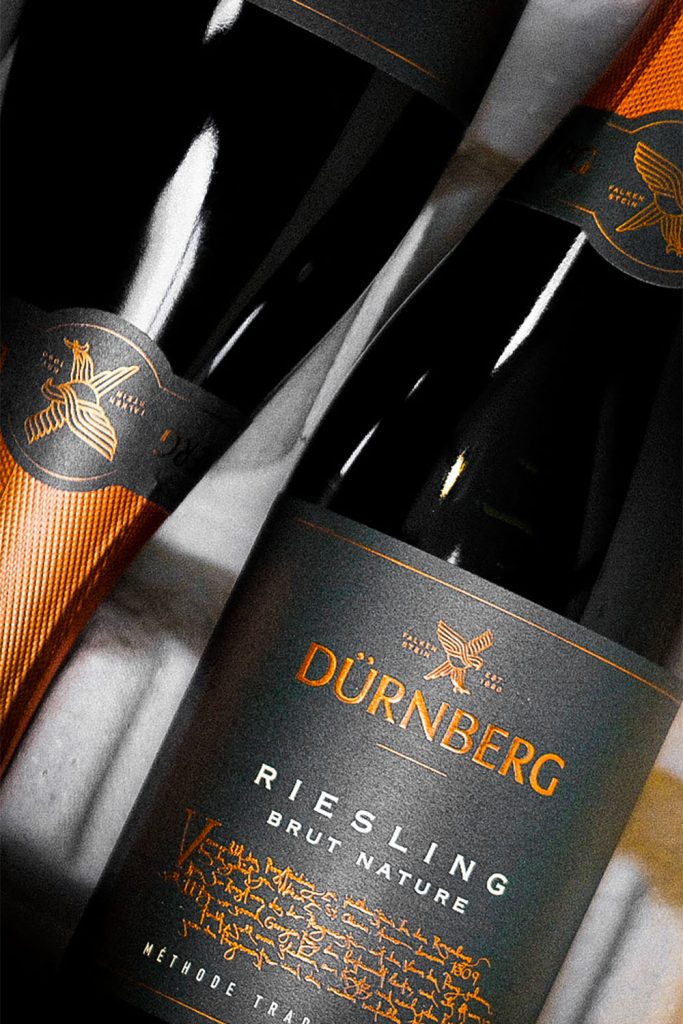 PackagingThe Dürnberg Winery, located in the beautiful village of Falkenstein in the Weinviertel region, is the only winery in Europe owned by an association of over 5,000 wine enthusiasts. We were commissioned to design a new logo and the labels for the winery’s finest sparkling wine.