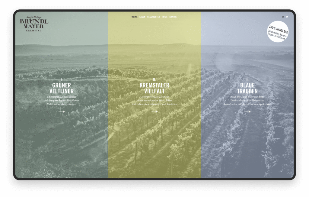 It’s clear: if a father and son can work so well together in their joint business, then surely we can pull off the design too. So we designed the logo, wine labels, wine boxes and business cards for Josef & Philipp Bründlmayer – drawing inspiration from the intergenerational dynamic that keeps the two of them going: time-honoured traditions with a breath of fresh air.