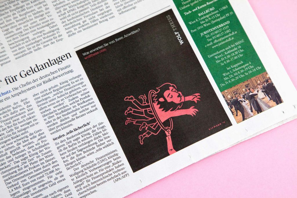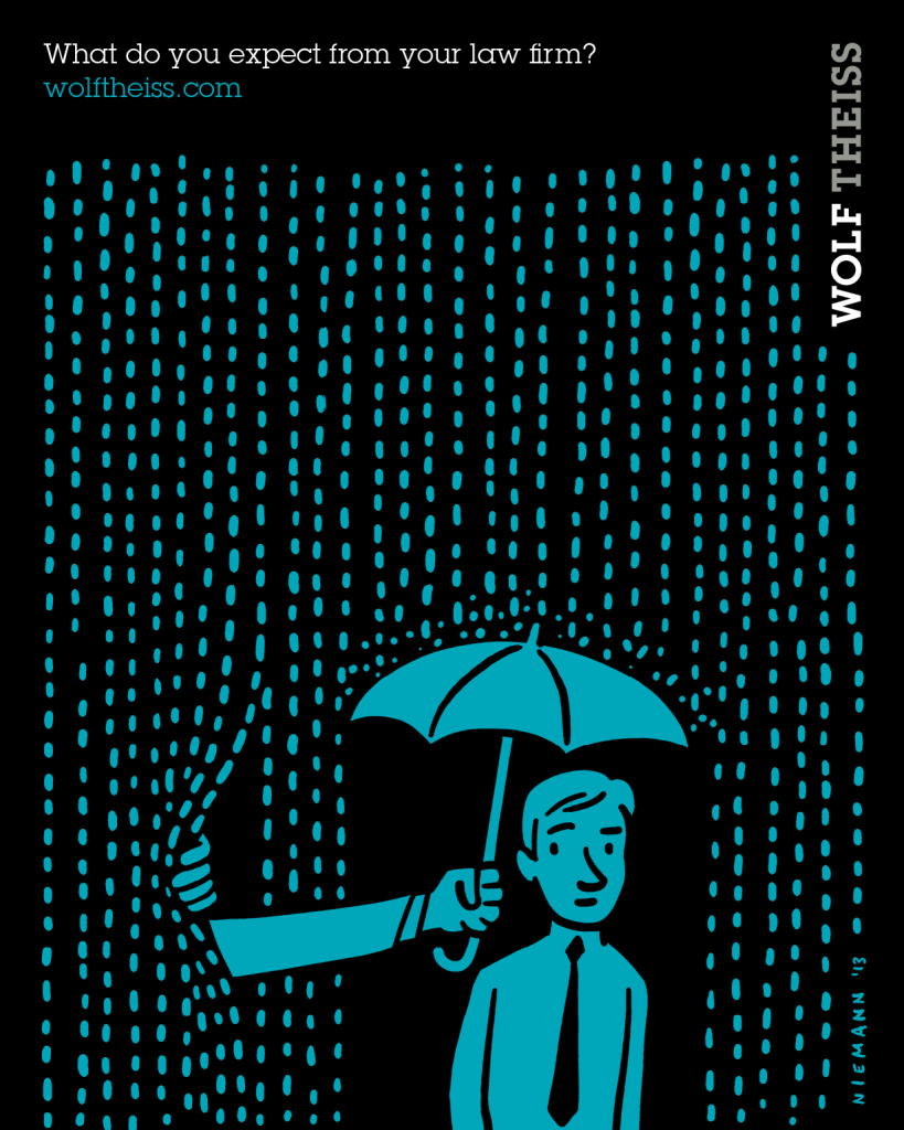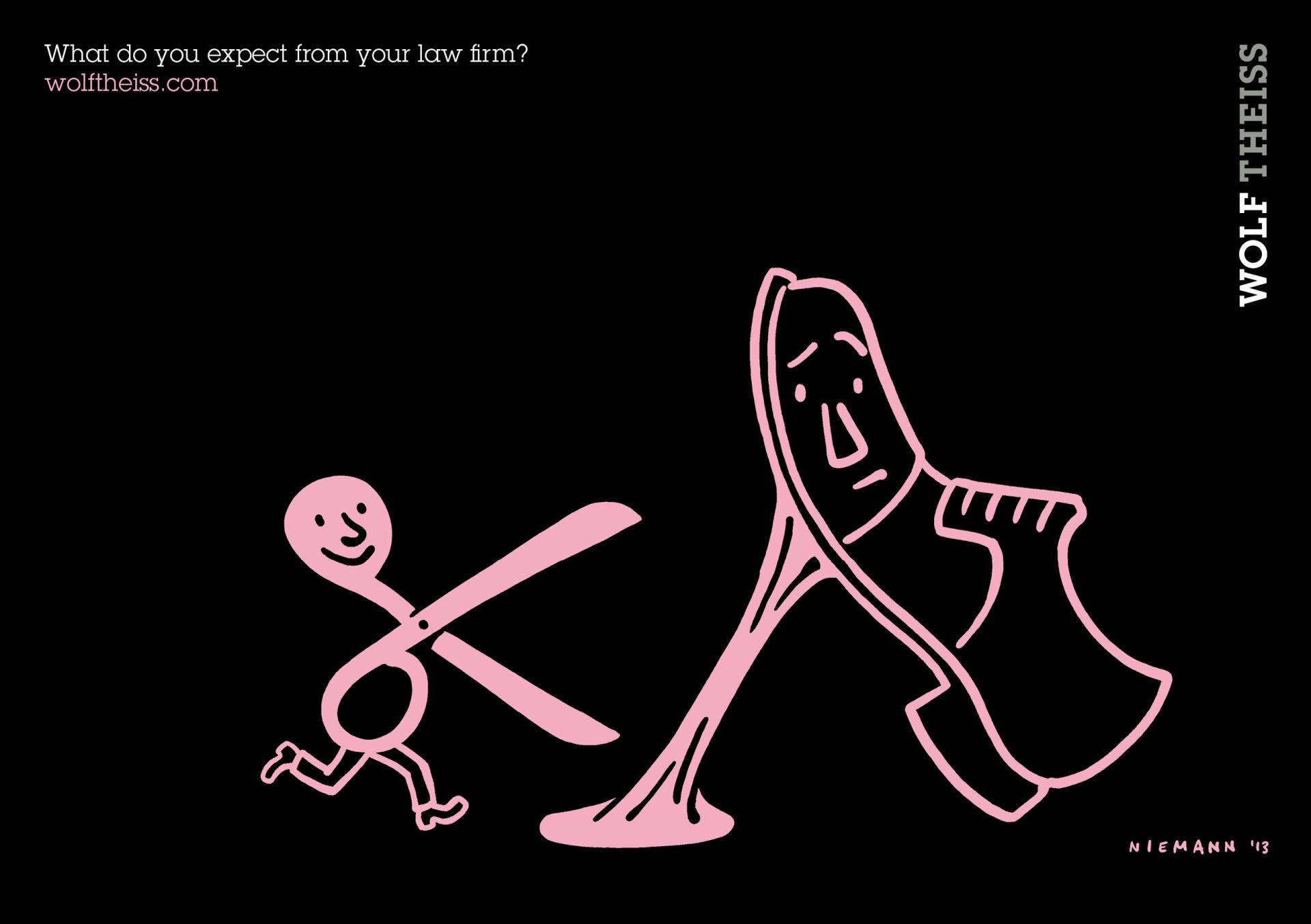 BrandingWolf Theiss lawyers are good. And they know it. Their clients in 13 countries know it. But how do I convey that in a campaign? It’s better to hear praise from others; self-praise stinks. It’s better to show, without words, that you’re good. What’s more, the adverts need to be understood in thirteen European countries.